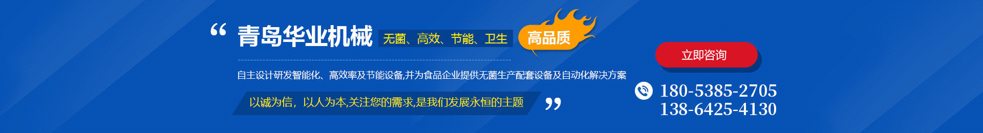 青島華業機械有限公司是一家致力于衛生級食品深加工設備研發、生產及銷售的食品機械企業。